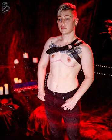 Alt guy PonyBoy has to earn getting pegged by my strap-on - by worshiping my boots, eating my ass, and deepthroating my cock! >:) Sink under my spell in this luscious domination scene. PonyBoy is ready to submit to my every command - and so are you! Play along as I command him to strip down to his jockstrap, then pleasure my combat boots with his lips and tongue. I surprised him by asking him to untie my laces with his teeth - would you be up for the challenge, too? After I've enjoyed his tongue all over my leather, I allow him to remove my boots and socks. He sucks my toes and even gags on my foot while I kick back and relax! Have you ever seen such an eager slut? (Maybe in the mirror?) I take full advantage of my floor-bound submissive by having him remove my pants and then worship my asshole. I bury his face in my ass cheeks as his tongue flicks and probes my hole. You can even see how thick and hard my clit is from the back! Finally I command him to bring me my dragon dick and slip it into my harness. He soaks it by sucking and gagging on it, spit getting everywhere as he deep-throats my dildo. When it's wet enough, I bend him over on the dungeon couch for his ultimate reward: a rough pegging! I make him fuck himself on my dick before I take control and pound his tight sissy hole until he's begging for more and pleading with me to get him pregnant...! I do my best to breed his bussy. >:) Do you like aftercare in your scenes? We finish with some cuddling and hair-stroking while I tell him what a good job he did!